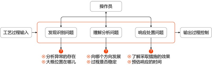 數(shù)字硫酸DCS系統(tǒng)是把硫酸裝置運(yùn)行數(shù)據(jù)進(jìn)行信息化,呈現(xiàn)在操作員面前的是硫酸裝置運(yùn)行信息,而非運(yùn)行數(shù)據(jù),不在像傳統(tǒng)DCS系統(tǒng)那樣操作員還需要對運(yùn)行數(shù)據(jù)進(jìn)行信息化處理。并且準(zhǔn)確、快速把硫酸裝置出現(xiàn)的信息呈現(xiàn)在操作員面前,并指導(dǎo)操作員對信息進(jìn)行處理。所以數(shù)字硫酸DCS系統(tǒng)是根據(jù)操作人員思考過程進(jìn)行設(shè)計(jì)的,操作人員在操作過程思考方式是發(fā)現(xiàn)問題、理解問題、處理問題。在設(shè)計(jì)遵循了操作人員對工藝和設(shè)備的思考邏輯原則,實(shí)現(xiàn)在操作時(shí)快速、準(zhǔn)確、不用太多思考。操作員思考過程見圖2。為了減少操作員思考,數(shù)字硫酸DCS系統(tǒng)融入了解決人類短時(shí)記憶限制技術(shù)。利用感官記憶技術(shù)使操作員通過直覺的勢態(tài)感知技術(shù),無需記憶就能有效分辨裝置運(yùn)行信息,準(zhǔn)確對裝置進(jìn)行人工干預(yù)。提高裝置運(yùn)行效率和安全性。