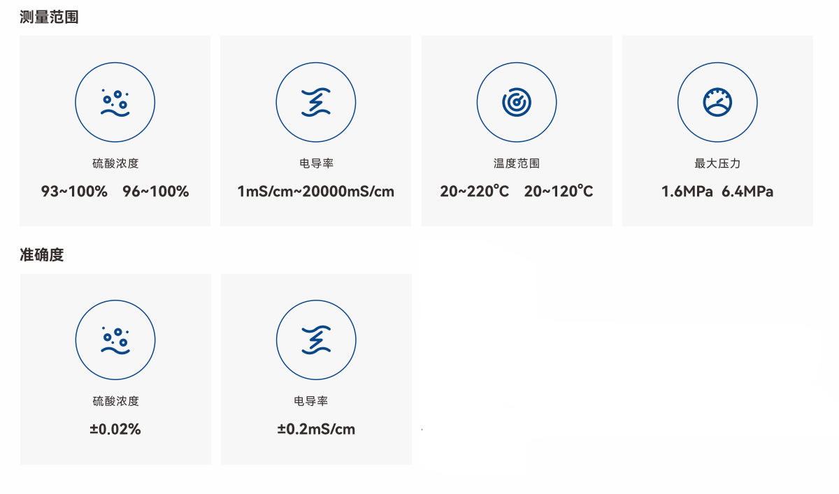 內(nèi)置20~220°C 硫酸濃度補(bǔ)償曲線。