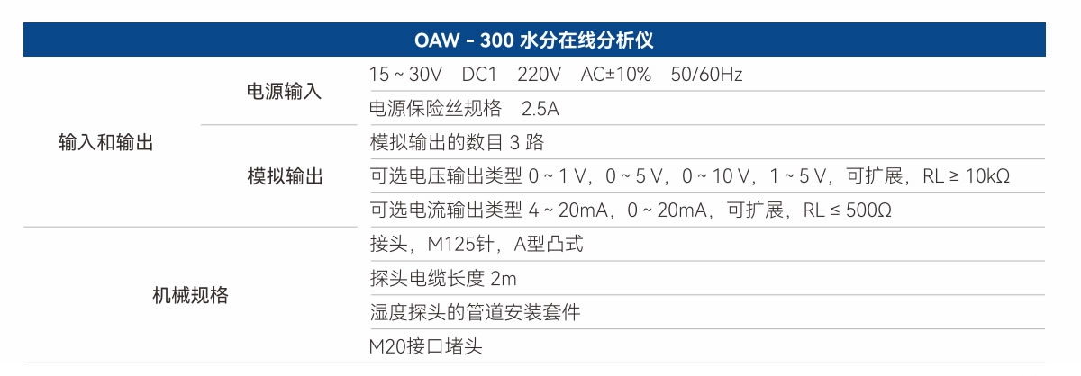 適用于硫酸裝置干燥塔進出口水分測量。
