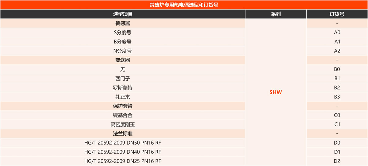 焚硫爐專用熱電偶 專為SHW焚硫爐設計的熱電偶,其保護套管采用先進的變形鎳基高溫合金復合材料制成,采用金屬卡套密封技術,確保了長期的耐高溫性能,能夠承受高達1200°C的極端溫度。該熱電偶以其快速的熱響應時間、高測量精度、寬廣的測溫范圍、出色的耐高溫性能、良好的抗沖擊能力以及穩定的性能表現而著稱。 產品手冊 獲取支持 產品優勢 選型參數 產品優勢 保護套管能夠在焚硫爐內長期使用。 即便熱電偶發生損壞,亦能確保煙氣的零泄漏。 采用鎳基變形高溫合金復合材料制成,該材料展現出卓越的抗氧化性能,機械性能穩定,且具備良好的抗疲勞和耐腐蝕特性。 此保護套管能在高達1200°C的煙氣環境中,以及含有硫和氯的氣氛下長期穩定工作,是焚硫爐測溫的理想選擇。 選型參數