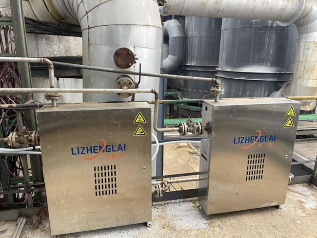 2. In low-temperature waste heat recovery systems, the operating parameters of primary cycle sulfuric acid are set at a temperature between 180 and 190 degrees Celsius, a pressure in the range of 0.1 to 0.2 mpa, a flow rate between 800 and 1000 cubic meters per hour, a concentration between 99.05% and 99.15%, while the air content accounts for 5% to 8% of the sulfuric acid. The sampling point of the sulfuric acid concentration analyzer is located at the horizontal pipe where the primary circulating sulfuric acid main pipe enters the tower body. Since the main pipe enters the tower immediately after the acid separator, the sampling point pressure of the analyzer is basically equivalent to the static pressure of the acid separator level. As the diluter adopts the technology of atomizing desalted water with compressed air to enhance the disturbance, the circulating sulfuric acid from the diluter is mixed with air medium. Currently used conductivity sensors cannot accurately measure sulfuric acid concentrations in airborne media. When sulfuric acid containing air medium flows through the conductivity sensor, the measured conductivity is abnormally low and unstable because the air is not conductive. In view of the higher the concentration of sulfuric acid, the lower its conductivity characteristics, sulfuric acid containing air medium through the conductivity sensor, the measured concentration value will be higher than the actual value, and there is a large fluctuation, so that accurate measurement can not be achieved.
