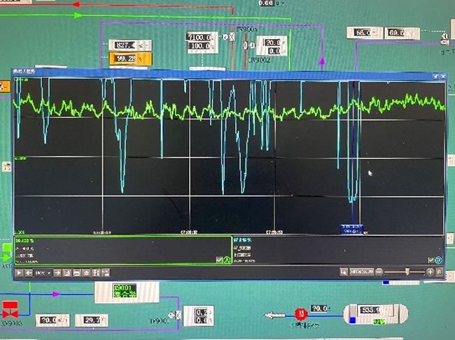 1. The concentration of primary circulating sulfuric acid is measured after the diluter, at which time the temperature of sulfuric acid is 180℃ and the pressure is 0.1MPa. In order to quickly achieve uniform mixing of water and sulfuric acid, the diluter adopts the technology of atomizing water with compressed air to enhance the disturbance effect. At present, the only sensors used to measure high temperature concentrated sulfuric acid are the AS118 model from Lilly Technology and the imported 222 conductivity sensor. However, because the conductivity sensor cannot measure sulfuric acid containing air medium, there is a large deviation between the measured value of the primary cycle acid concentration in the waste heat recovery system and the actual value, and the measured data fluctuates significantly, as shown in Figure 1. Therefore, these measurements cannot meet the requirements of safety interlocking and automatic water filling control.