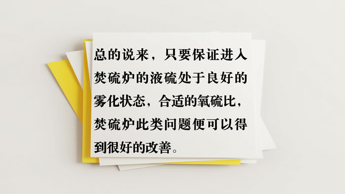 For example: the spray effect of the sulfonate gun is not good, resulting in insufficient combustion, which accumulates at the bottom. Although the oxygen to sulfur ratio is in line with the process, its combustion rate is not enough, which will lead to sublimed sulfur entering the subsequent section with high temperature gas.
