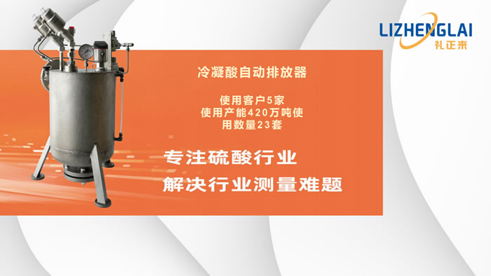 Automatic condensing acid emitters Solve the safety risk of being burned by acid in the process of condensing acid discharge, reduce the discharge of acid gas to the environment about 18000m3 effectively protect the environment.