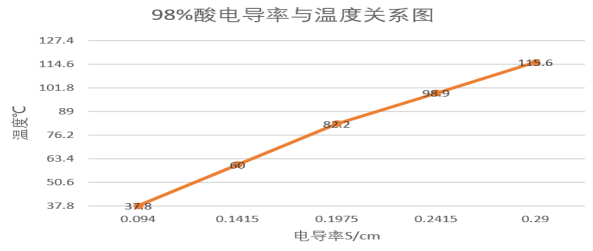 In the sulfuric acid process, the temperature control of each process is extremely strict. Boilers, heat exchangers, economizers and superheaters, etc. act as temperature regulators, and the concept of waste heat recovery associated with the above equipment is introduced. If the heat exchange performance of the local equipment for waste heat recovery decreases, the process temperature will rise or fall correspondingly from the local to the whole, which will affect the electrolysis degree of sulfuric acid, and the electrolysis degree of sulfuric acid will increase with the increase of temperature, that is, the electrical conductivity will rise with the increase of temperature, as shown in Figure 3.1.