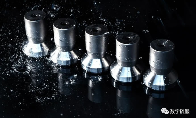In the six months after the operation, there was no leakage of the nozzle front flange sealing surface during the temporary parking of the device. The high-efficiency sulfur spray gun can effectively adapt to the load of the device at 60%~110%, and there is no liquid sulfur burning at the bottom of the sulfur burning furnace within the load range (see figure 1 on the upper right). The steam jacket leakage due to alternating hot and cold was solved, and the situation that the atomization flow rate decreased and sulfur stalactite appeared in the lower part of the sulfur burning furnace did not occur during operation. The working flow range of the high-efficiency sulfur spray gun is larger, the maximum flow rate is increased by 0.49 t/h, and the minimum flow rate is reduced by 1.36 t/h. The working pressure is reduced by about 0.3MPa; The atomization distance is shortened by about 1 m. The operating temperature inside the furnace is reduced by 160 ° C, and the surface temperature is reduced by 72~90 ° C to ensure that the furnace operates at a safe temperature. The application of the high-efficiency sulfur spray gun optimizes the atomization effect of liquid sulfur (see Figure 3 on the upper right), increases the maximum load and sulfuric acid capacity of the sulfur acid making unit, and can increase sulfuric acid production by 120 t per day. After the high-efficiency sulfur spray gun was put into use for nearly half a year, the sulfuric acid production capacity increased by 16 500 t and the productive steam 23 100 t, creating revenue of 21 million yuan for the enterprise and significant economic benefits. Due to the decrease in the operating pressure of the sulfur gun and the decrease in the acid flue gas. (SO2) increase, tons of acid power consumption can save 2.8 kWh/t, played a role in energy saving and consumption reduction.