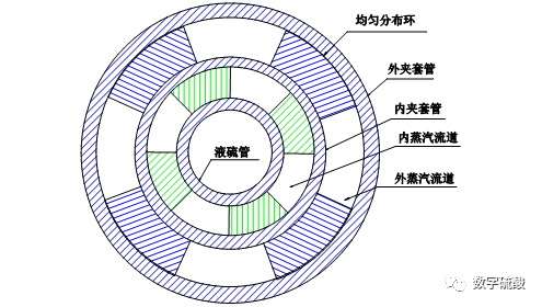 After analysis, the main cause of bending sulfur spray gun is uneven distribution of thermal stress on the gun body. The change of thermal stress of the gun body was analyzed in the design of the high efficiency sulfur spray gun thermal jacket. When the device is running, the combustion flame is affected by the airflow vortex, and the flame will heat the front of the sulfur spray gun, and the front area is baked by the flame, so the front of the spray gun will have thermal stress expansion. In order to make the thermal stress expansion of the gun consistent, it is necessary to distribute the heat insulation steam evenly inside the gun body. Therefore, we set four uniform distribution rings of heat insulation steam on the circulation area of the gun jacket (see the upper left figure), and use the uniform distribution ring to forcibly mix the steam temperature of each section, so that the steam temperature entering the next section is consistent. Thus, the gun body temperature is consistent to avoid thermal stress expansion of the gun body.