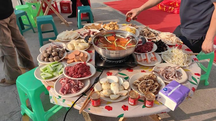 Immediately after, the fragrant hot pot was served on the table. Everyone sat around, raised their glasses to drink together, and the laughter and joy echoed in the air. While enjoying the delicious hot pot, we also watched the wonderful performances brought by the company's hidden singers. The singing of various styles, some deep and touching, some passionate and vigorous, complemented the setting sun on the horizon, forming a warm and beautiful scene.