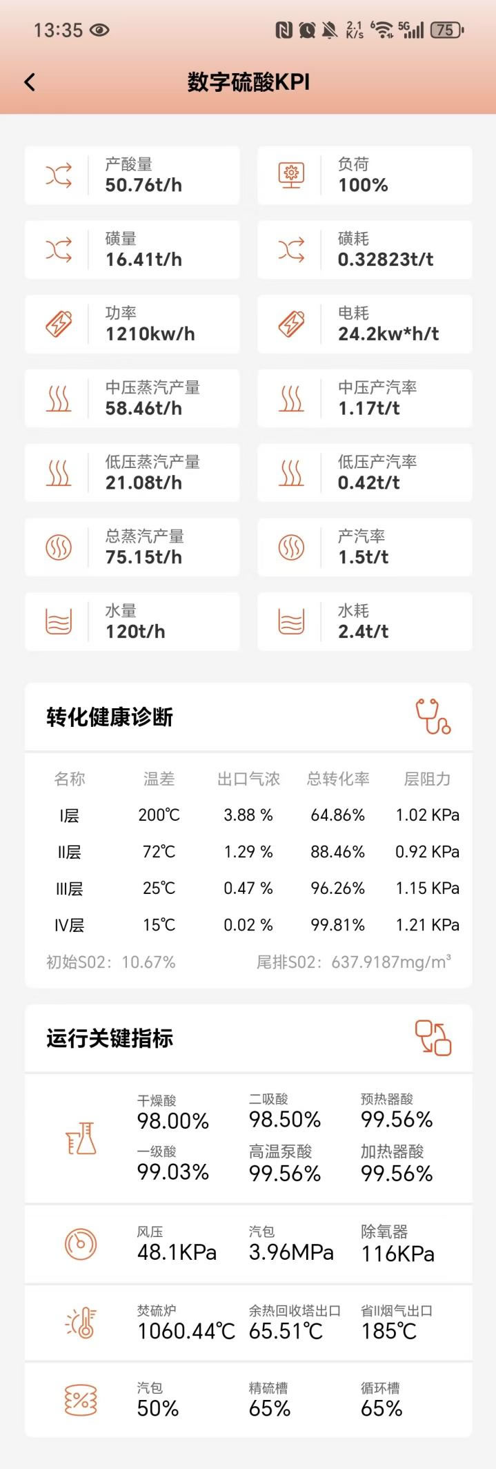 3.運(yùn)行關(guān)鍵指標(biāo)展示酸濃、壓力、出口溫度、液位及其他運(yùn)行數(shù)據(jù)。