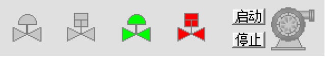 For valves and motors, we use fill colors to indicate open/close and start/stop states. Color changes—green for open/close, red for start/stop—clearly convey operational status.