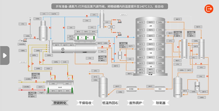Our self-developed OTS simulation system fully takes into account the real needs and operation habits of different user groups, and is committed to creating a more user-friendly and smooth interaction experience. For beginners in the sulfuric acid industry, the interface design is simple and intuitive, combined with visual operation steps and corresponding prompts, greatly reducing the learning cost and threshold; for operators familiar with the process flow, the system is highly consistent with the actual operation logic of the factory, helping them to seamlessly connect and work efficiently. (The picture shown is for reference only and does not represent the final online effect.)