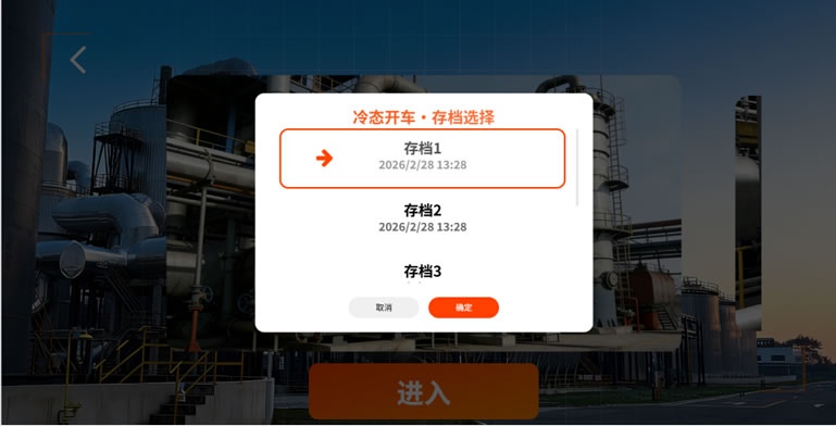· The practice mode covers various scenarios such as cold start-up, hot start-up, short-term shutdown, and long-term shutdown (additional single-section start-up and shutdown scenarios can be added based on requirements). Each scenario is equipped with 5 or more operation snapshots and automatic backup functions. Users can select any snapshot from the external interface at any time to quickly return to the current operation state, achieving efficient re-practice. Additionally, the practice mode has a time recording function, which can display the cumulative study hours of the trainees.